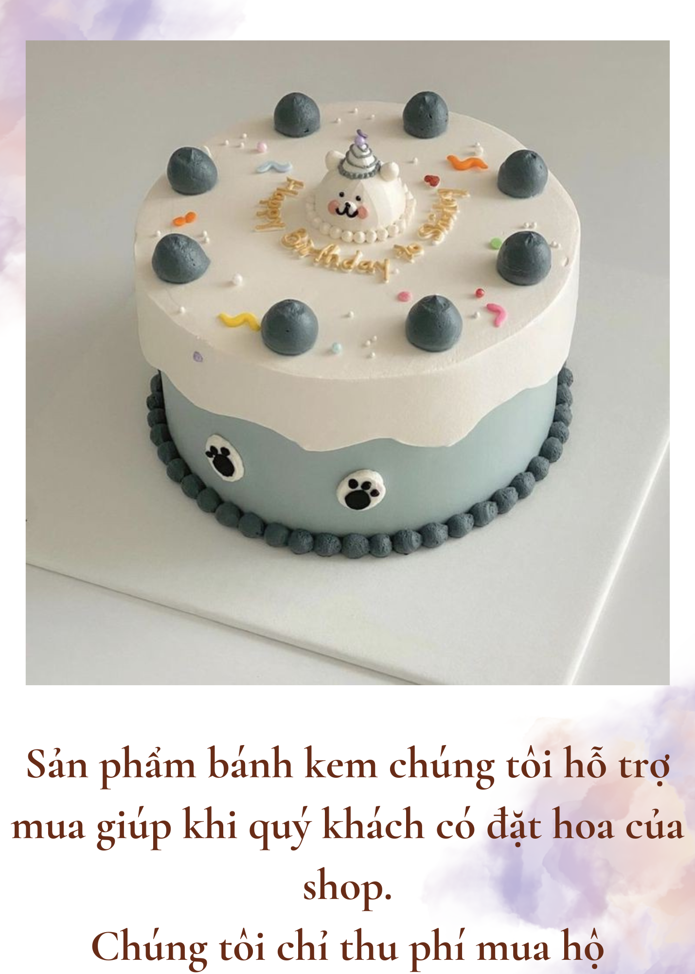Sản phẩm bánh kem chúng tôi hỗ trợ mua hộ vì thế mẫu mã sản phẩm thường là các mẫu có sẵn, thông dụng tại các cửa hàng.