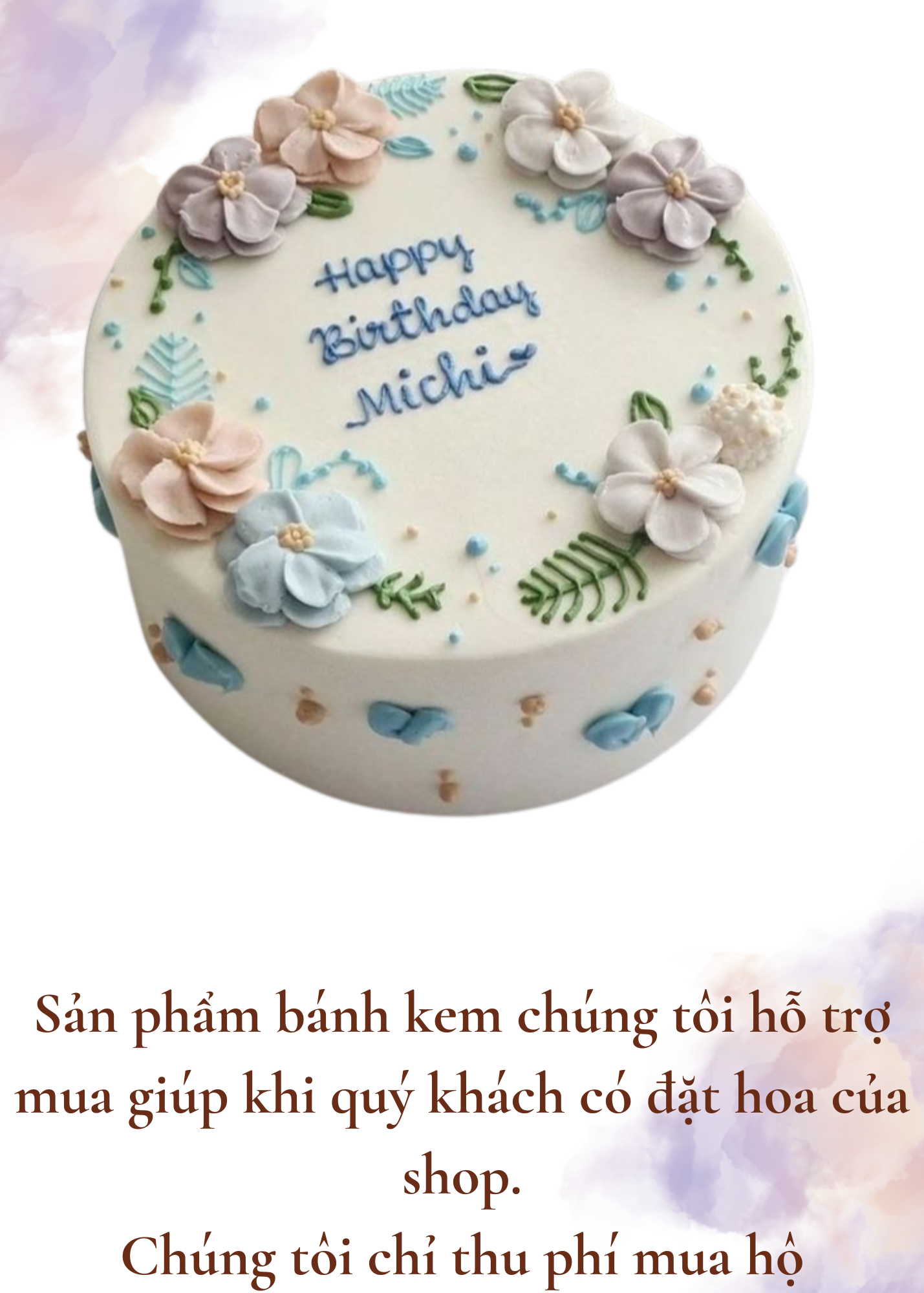 Sản phẩm bánh kem chúng tôi hỗ trợ mua hộ vì thế mẫu mã sản phẩm thường là các mẫu có sẵn, thông dụng tại các cửa hàng.