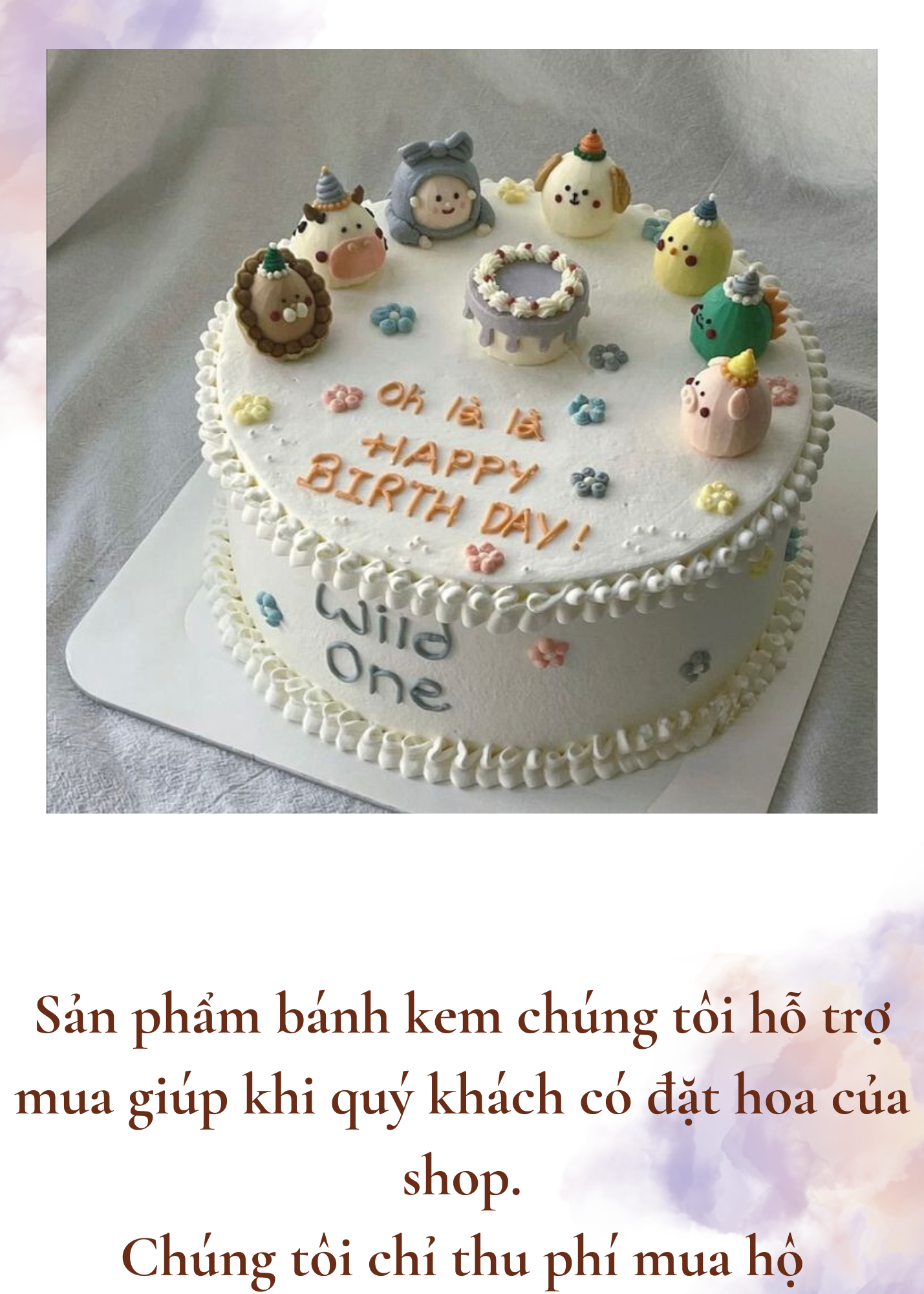 Sản phẩm bánh kem chúng tôi hỗ trợ mua hộ vì thế mẫu mã sản phẩm thường là các mẫu có sẵn, thông dụng tại các cửa hàng.