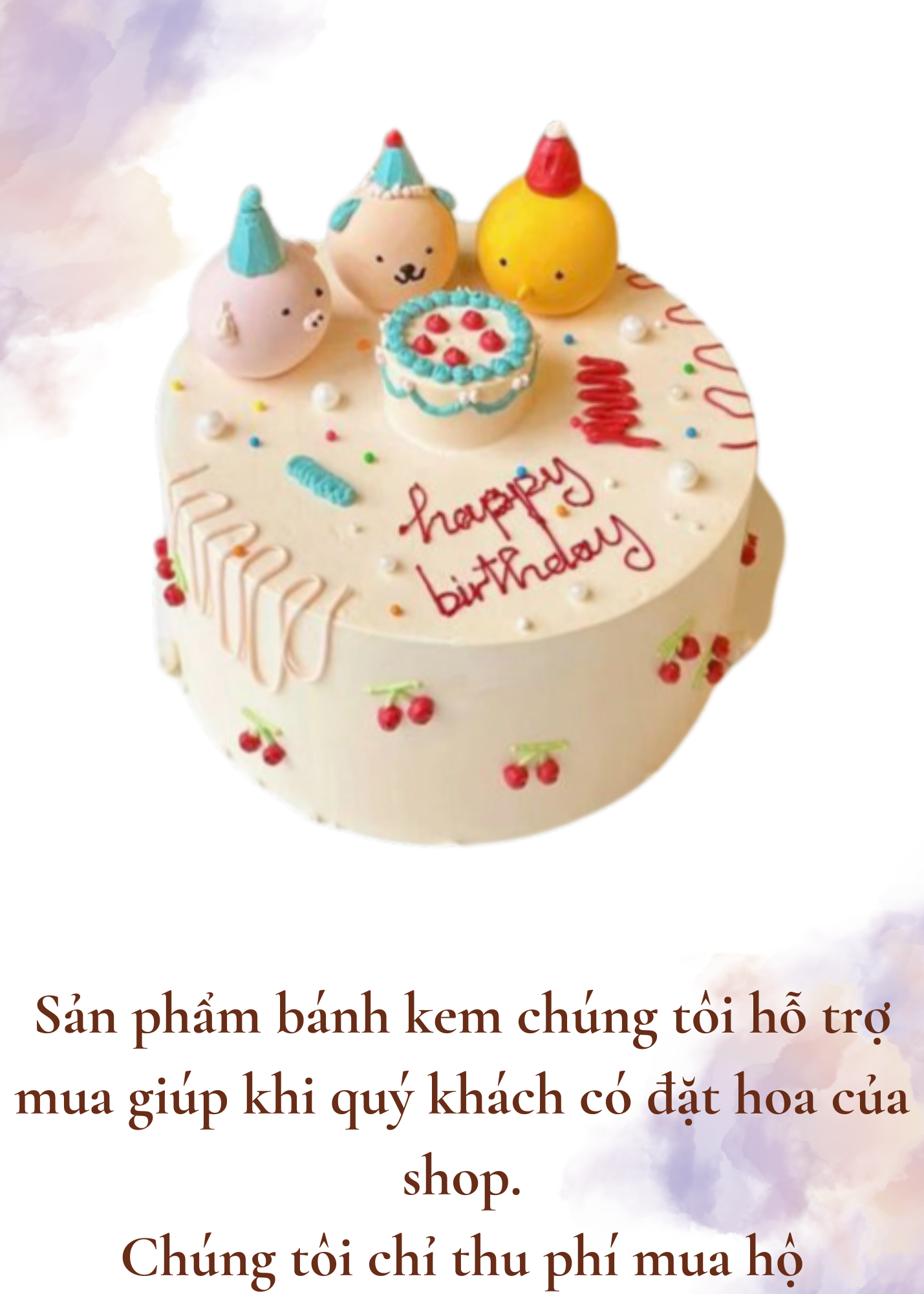 Sản phẩm bánh kem chúng tôi hỗ trợ mua hộ vì thế mẫu mã sản phẩm thường là các mẫu có sẵn, thông dụng tại các cửa hàng.
