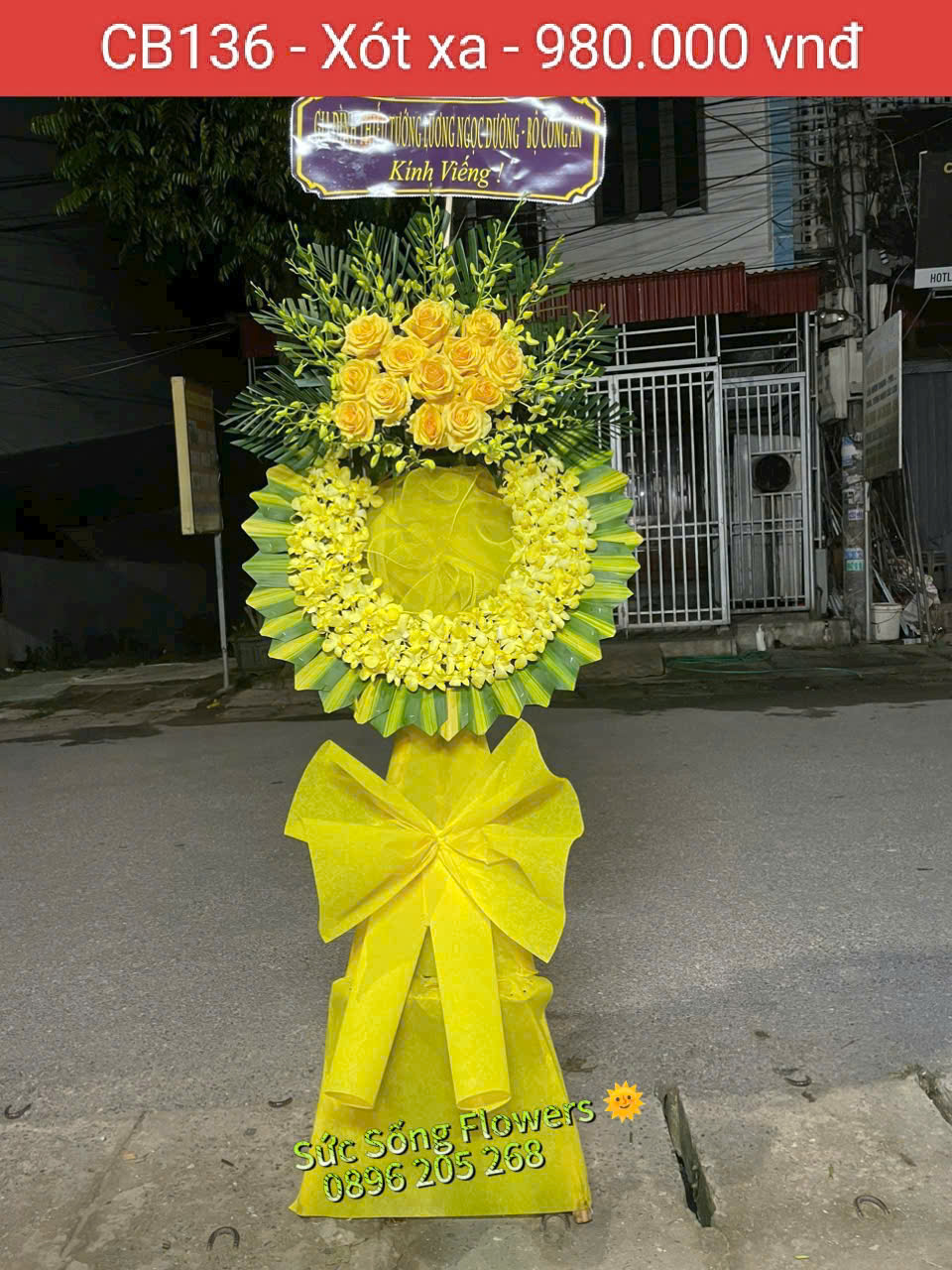 Kệ hoa chia buồn “CB136 – Xót xa” mang ý nghĩa tiễn đưa người đã khuất về miền an lạc cũng như chia sẻ nỗi đau cùng gia quyến