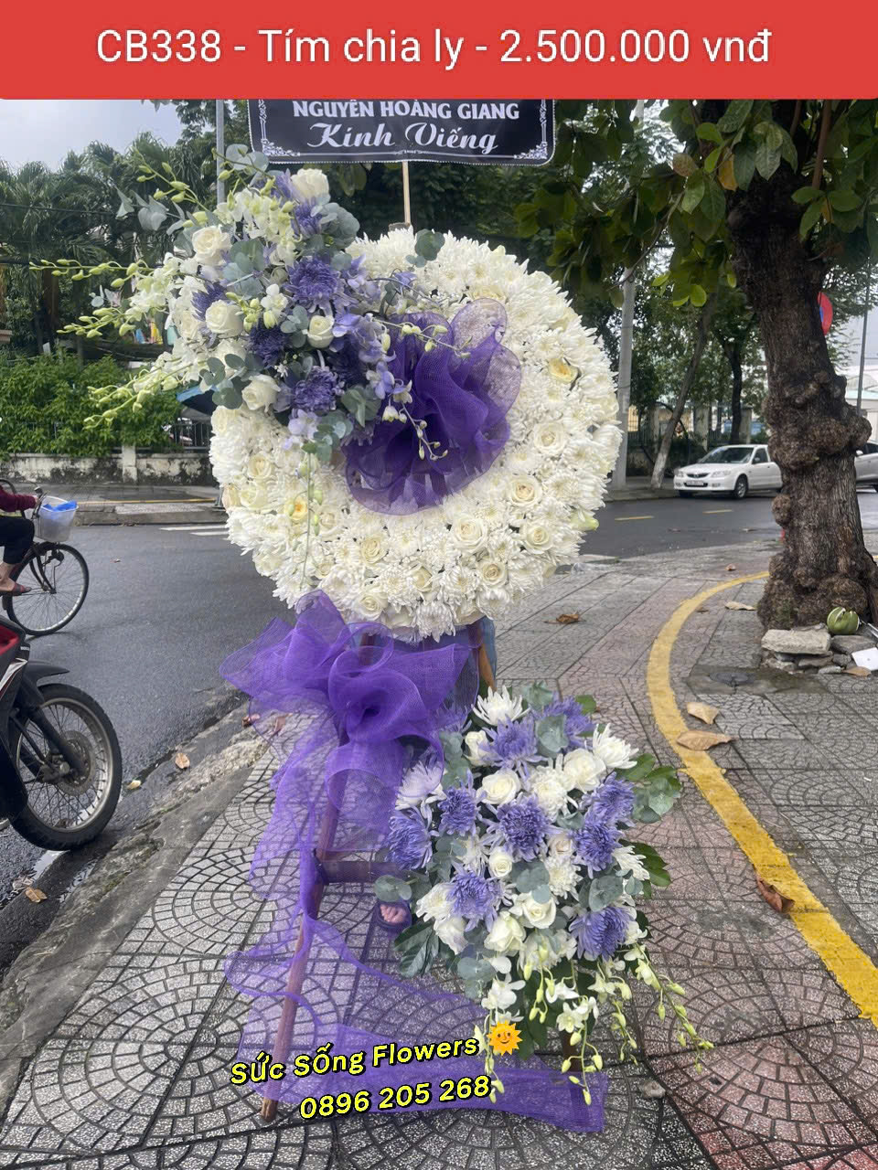 Kê hoa chia buồn “CB338 – Tím chia ly” bày tỏ sự đau thương khôn nguôi khi từ nay phải chia ly đôi ngã