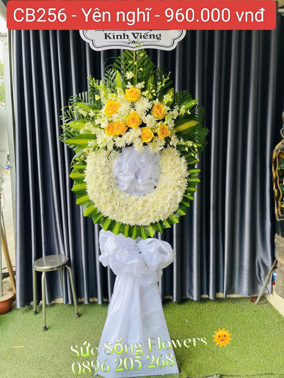Kệ hoa chia buồn “CB256 – An nghỉ” gởi đến người đã mất lời chúc mong người được hạnh phúc nơi chân trời xa