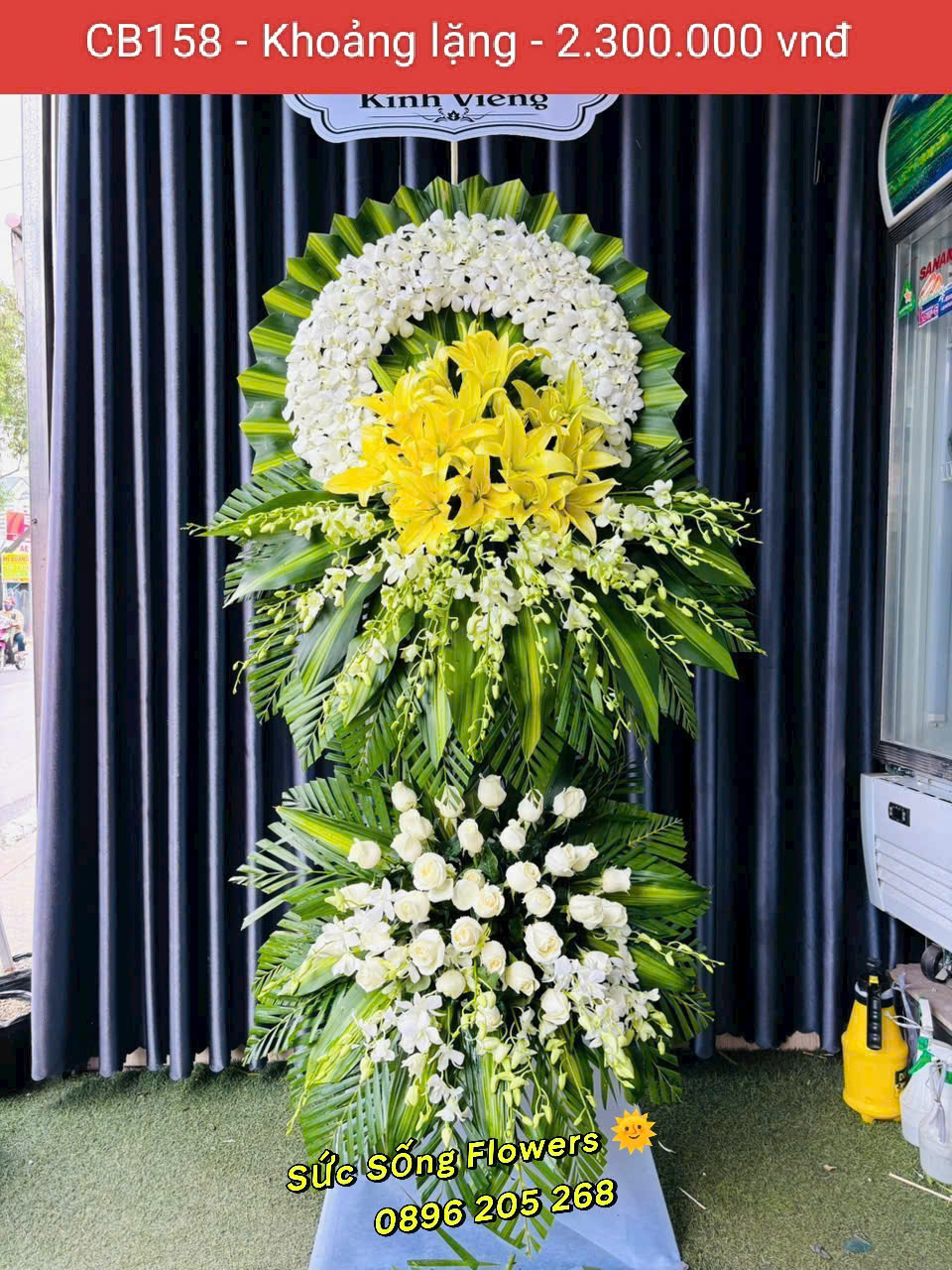 Kệ hoa chia buồn “CB158 – Khoảng lặng” bày tỏ sự tiếc thương, nén nỗi đau để tiễn đưa người đã khuất về với miền cực lạc
