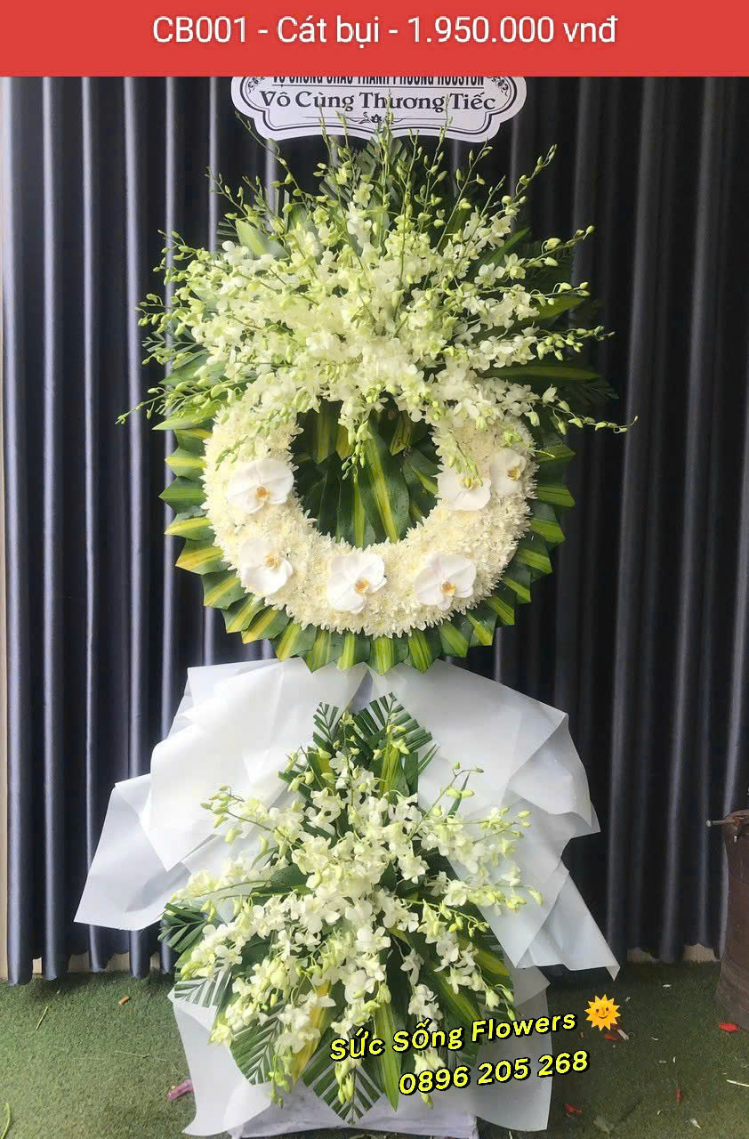 Kệ hoa chia buồn “CB001 – Cát bụi” thay bạn tiễn đưa người đã khuất về nơi chín suối và chúc họ có một cuộc sống hạnh phúc nơi ấy…