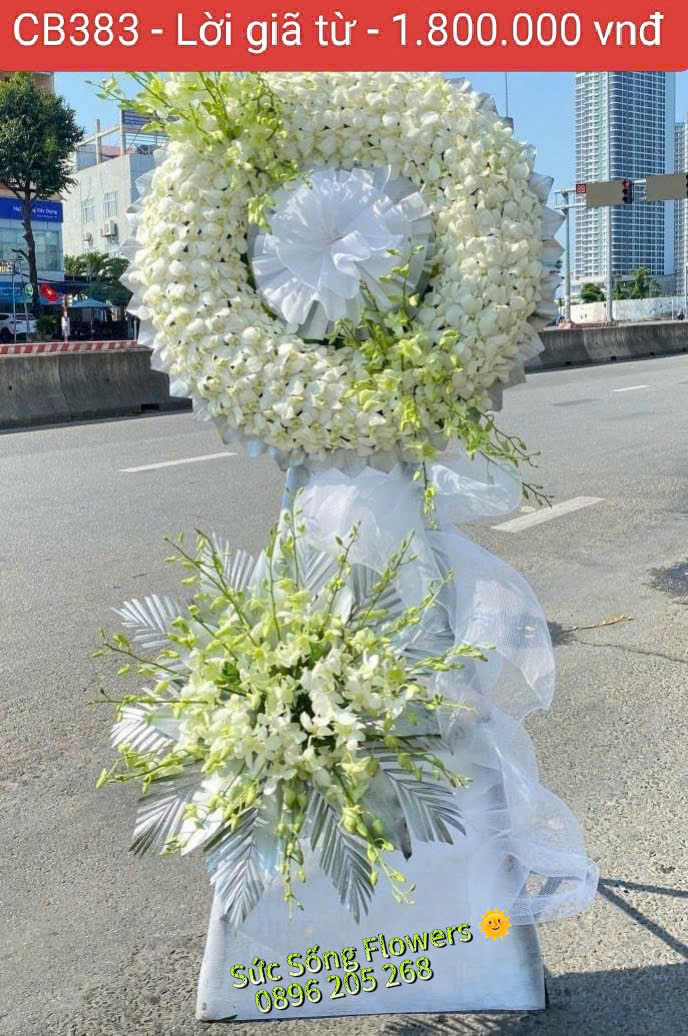 Kệ hoa chia buồn “CB383 – Lời giã từ ” như là lời chúc họ được an nghĩ ở thế giới bên kia