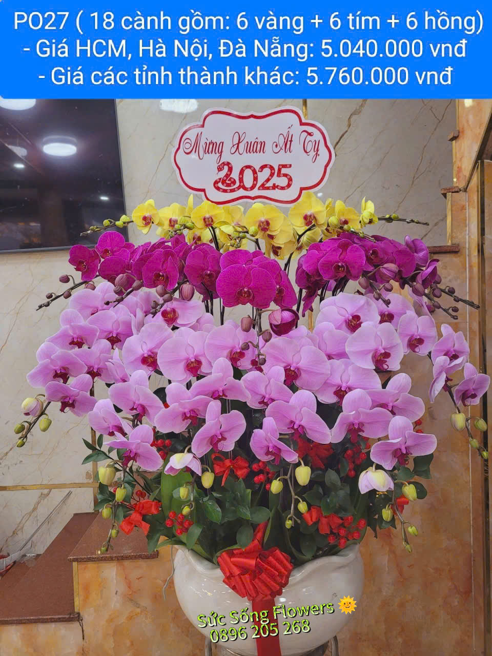PO27 (18 cành gồm: 6 vàng + 6 tím + 6 hồng)