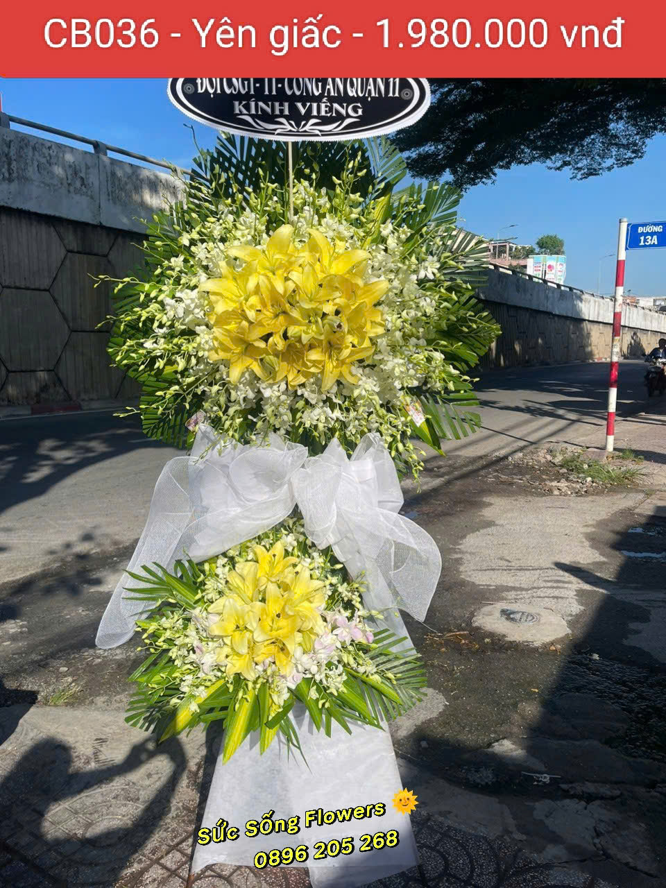 Kệ hoa chia buồn “CB036 – Yên giấc” như là lời chúc họ được an nghĩ ở thế giới bên kia