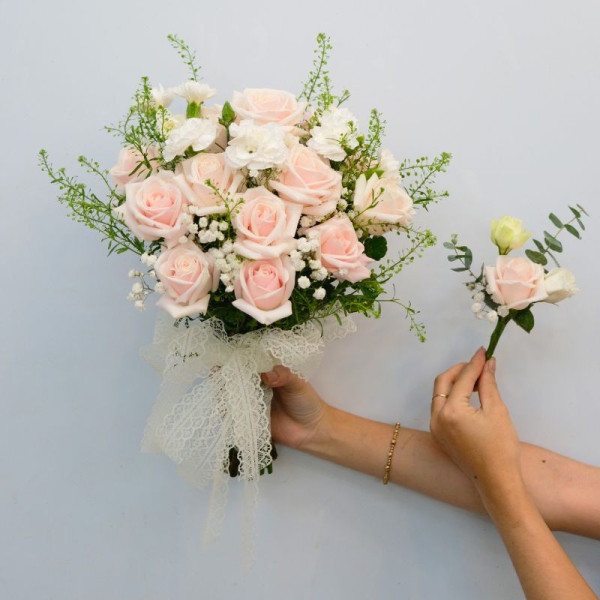 Bó hoa cưới “HC38 – Tình hồng thắm” sẽ giúp bạn thật rạng ngời trong ngày đặc biệt này