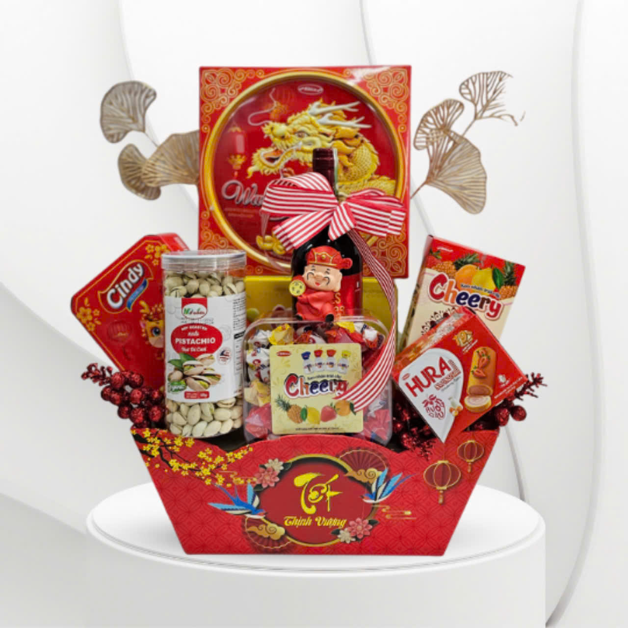 Giỏ quà Tết không chỉ mang ý nghĩa chúc phúc một năm mới sung túc, ấm no mà còn thể hiện sự quan tâm chân thành của người tặng.