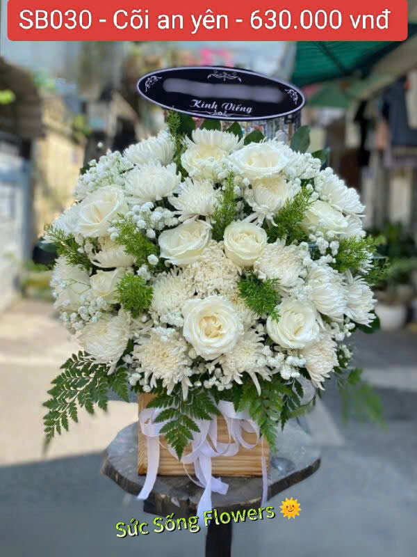 Hộp hoa chia buồn “SB030 – Cõi an yên” như là lời tiễn đưa, lời chúc người đã khuất hãy an lòng đi về với cõi an yên