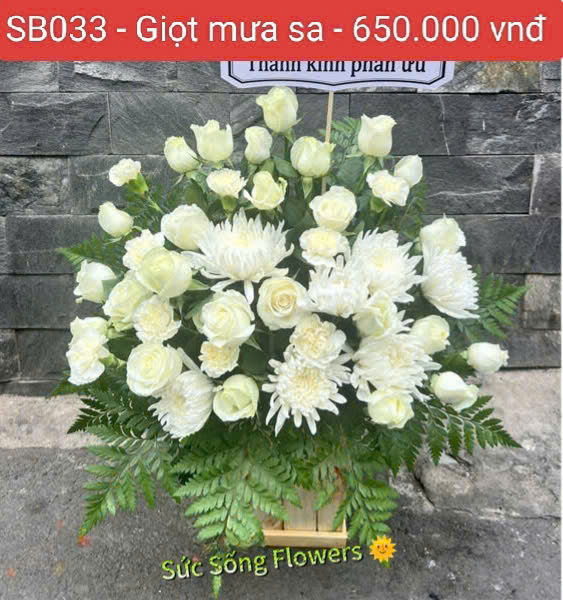 Hộp hoa chia buồn “SB033 – Giọt mưa sa” như lời tiễn biêt, chúc người đã khuất an nghĩ miền cực lạc