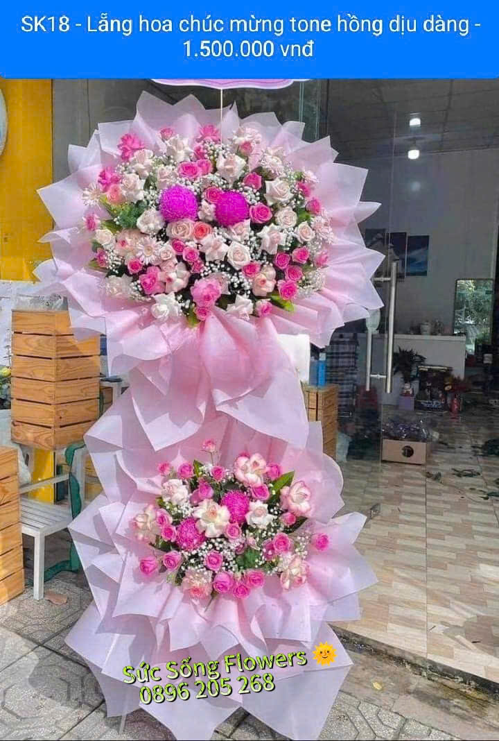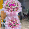 Kệ hoa với tone màu hồng nhẹ nhàng, kiểu dáng hiện đại, trẻ trung thật sự nổi bật hơn so với các kệ hoa truyền thống. Kệ hoa mang ý nghĩa về một lời chúc vạn sự may mắn, cát tường. Thích hợp tặng trong dịp chúc mừng, khai trương, kỉ niệm.