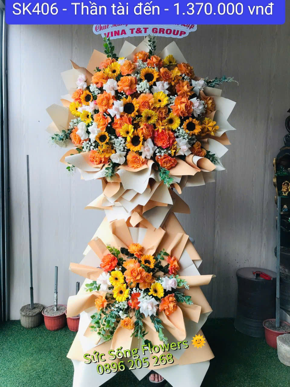 Kệ hoa chúc mừng “SK406 – Thần tài đến” sẽ thay bạn gởi những lời chúc tốt đẹp nhất đến bạn bè, người thân nhân ngày khai trương