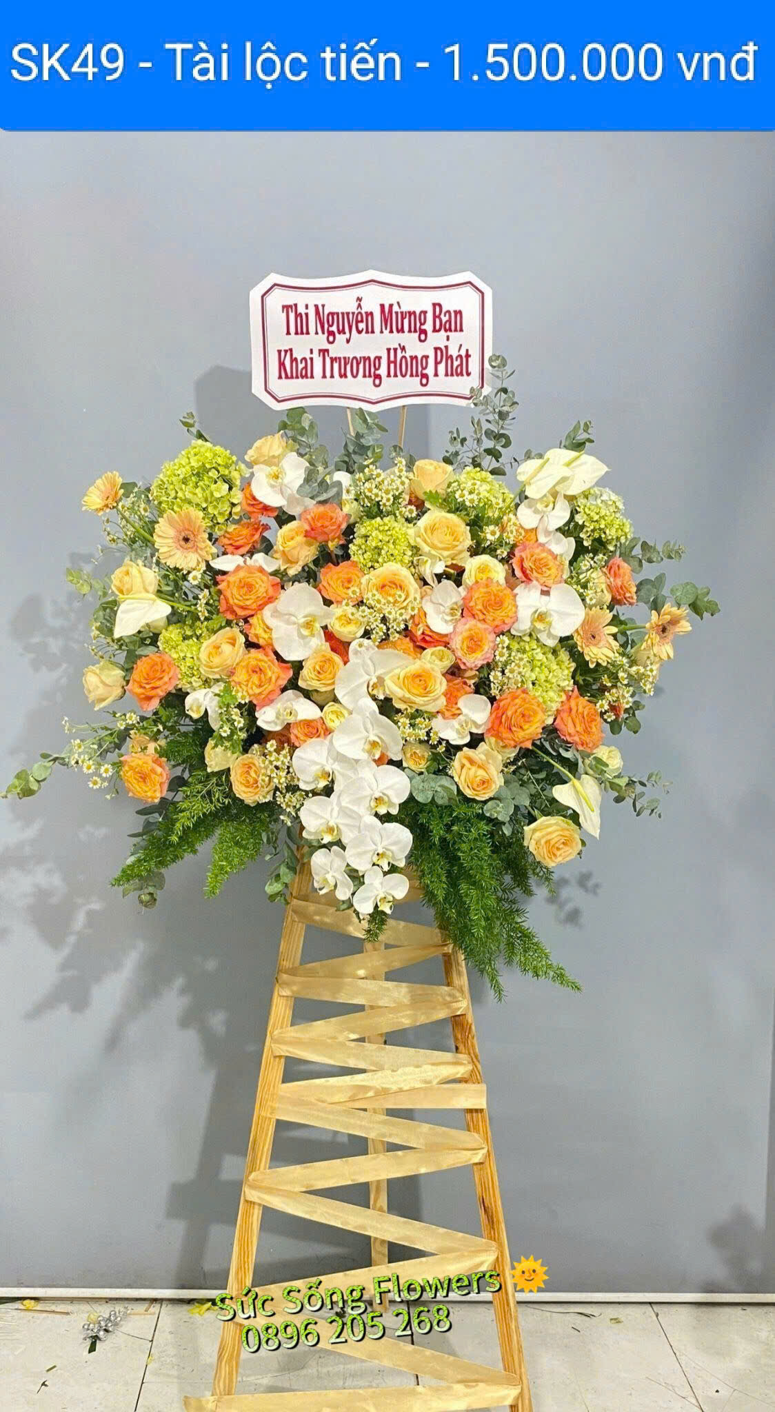 Kệ hoa khai trương “SK49 – Tài lộc tiến” sẽ thay bạn gởi những lời chúc tốt đẹp nhất đến bạn bè, người thân nhân ngày khai trương