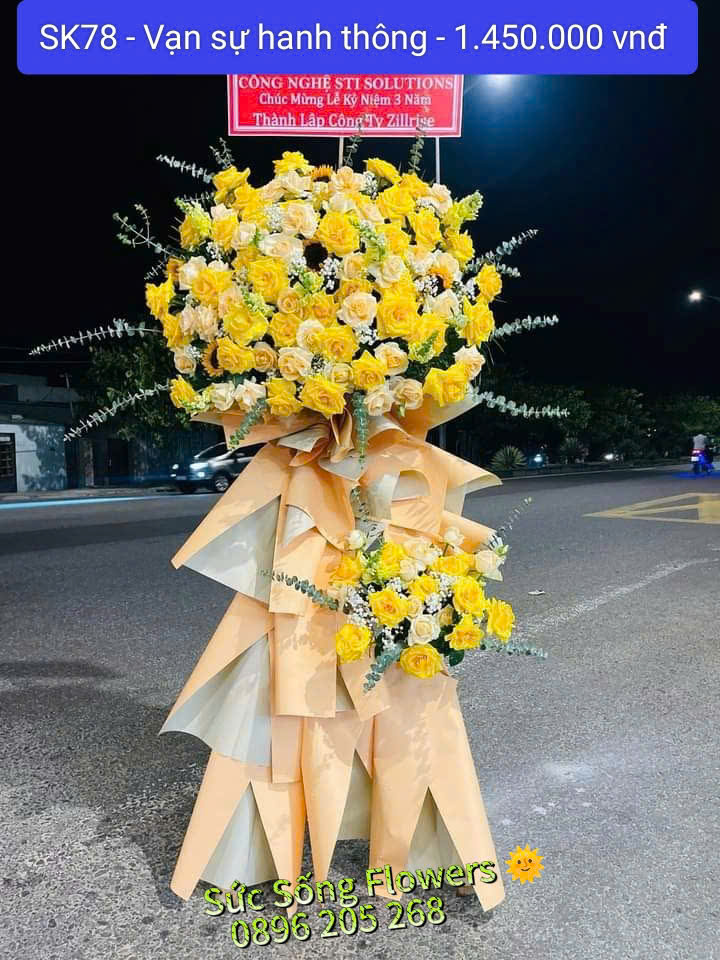 Được xem là màu may mắn, màu vàng rất thích hợp cho hỷ sự, lễ hội. Lẵng hoa được thiết kế một cách sang trọng và tỉ mỉ phục vụ các dịp khai trương, khánh thành, tổ chức sự kiện và trong các dịp lễ quan trọng khác.
