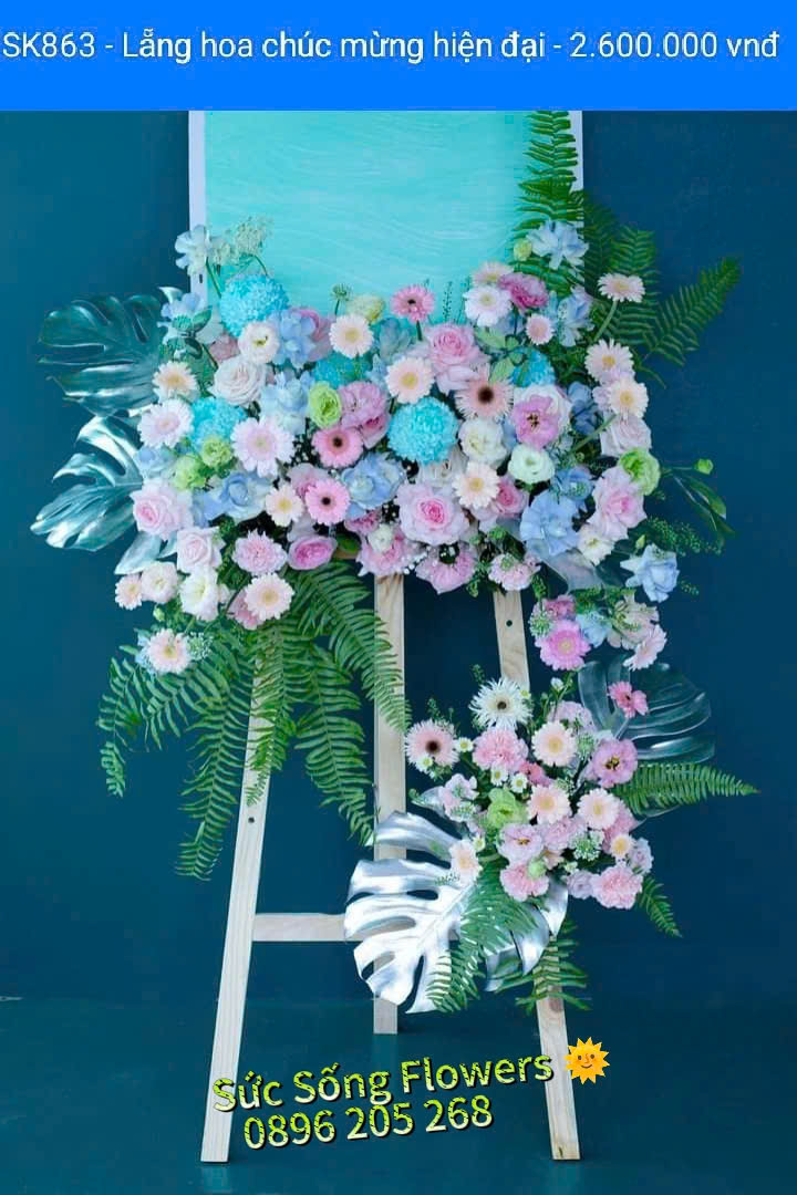 Kệ hoa chúc mừng SK863 được thiết kế với kiểu dáng hiện đại và sang trọng luôn đem lại cái nhìn khác biệt đối với người nhận. Thích hợp tặng dịp khai trương, chúc mừng, kỷ niệm thành lập….