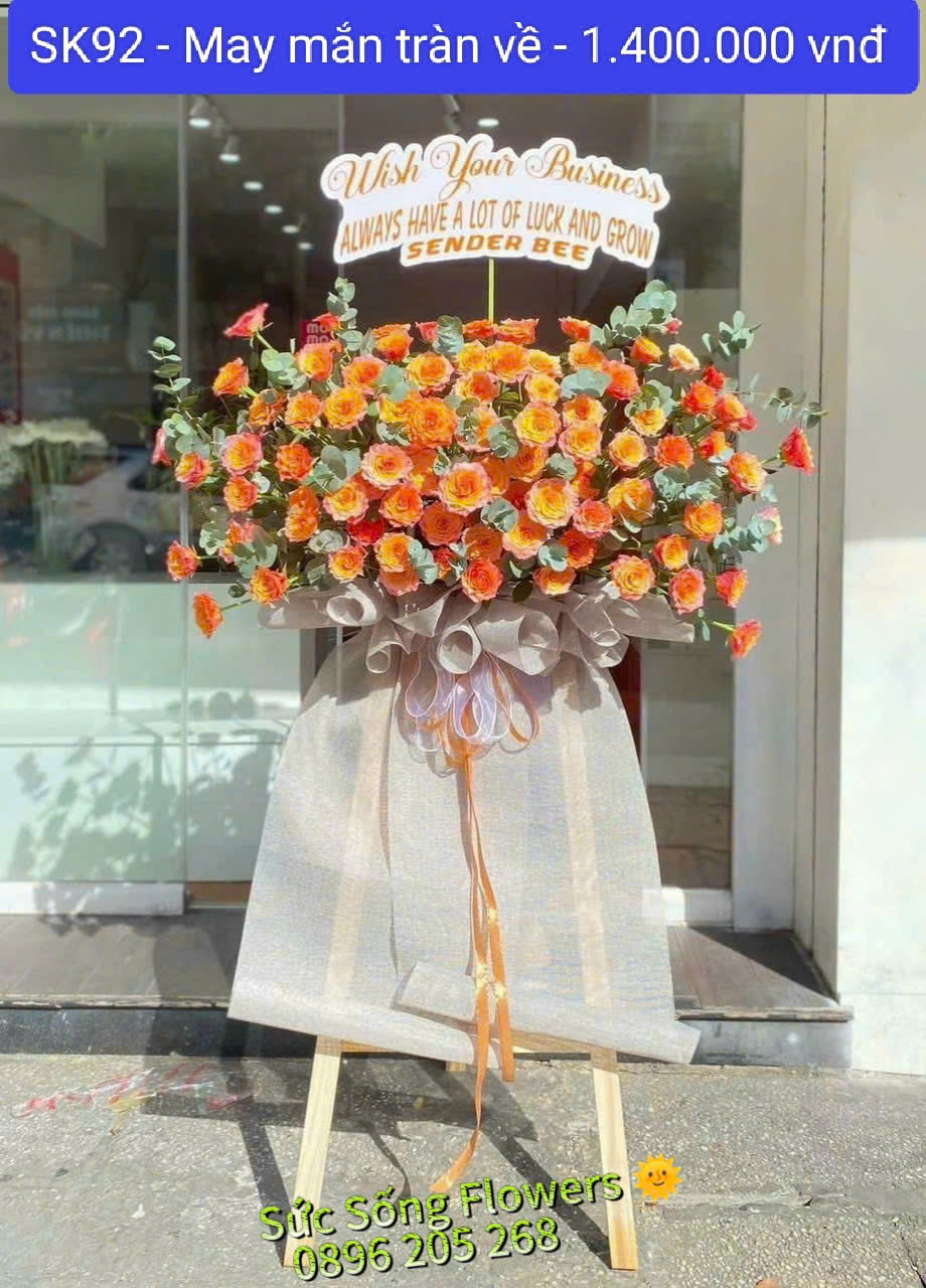 Lẵng hoa SK92 với thiết kế chủ đạo là màu cam đem lại sự mới mẻ, đẹp mắt. Lẵng hoa phù hợp với các dịp khai trương, khánh thành, tổ chức sự kiện và trong các dịp lễ quan trọng khác.