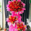 Kệ hoa với tone màu hồng nhẹ nhàng, kiểu dáng hiện đại, trẻ trung thật sự nổi bật hơn so với các kệ hoa truyền thống. Kệ hoa mang ý nghĩa về một lời chúc vạn sự may mắn, cát tường. Thích hợp tặng trong dịp chúc mừng, khai trương, kỉ niệm.